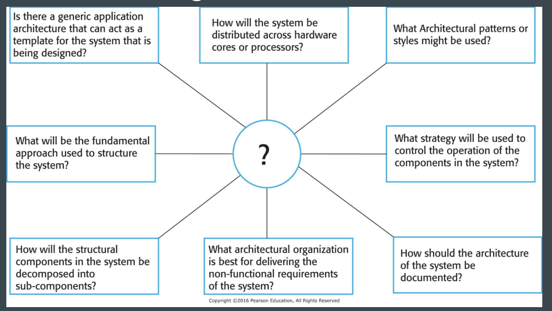 (아키텍처 설계는 창의적인 과정이기 때문에 개발되는 시스템의 유형에 따라 그 과정이 달라진다.) - 하지만, 모든 설계에 공통으로 들어가는 중요한 결정들이 있다.