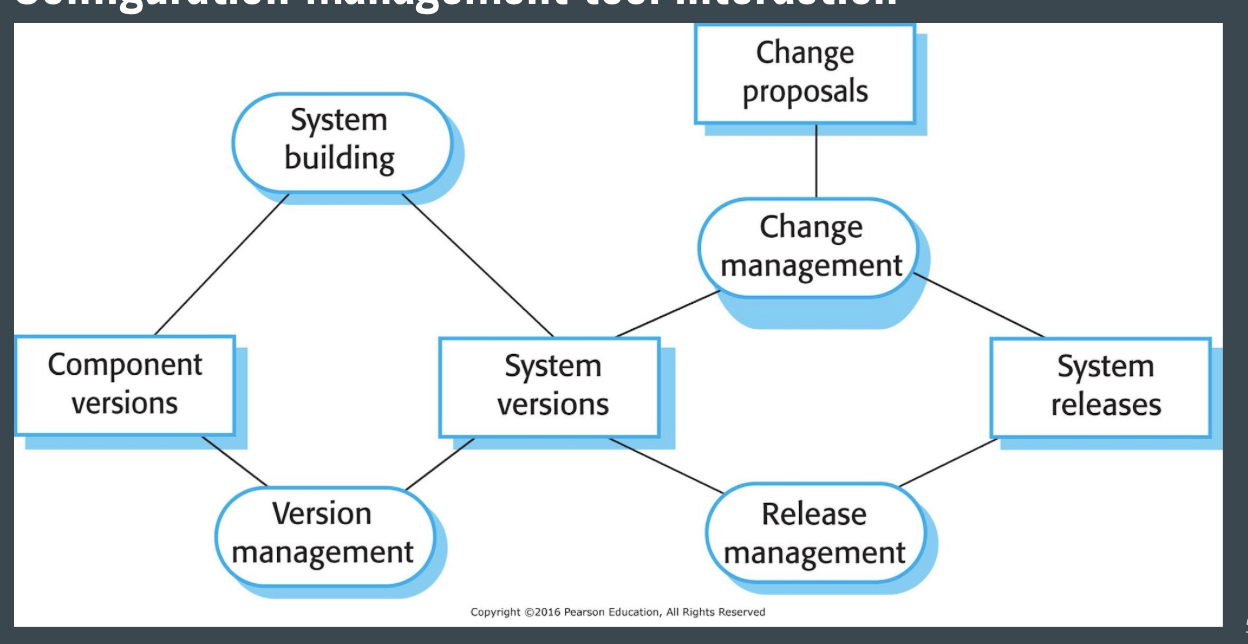 - 구성 관리는 발전하는 소프트웨어 시스템에 대한 변경을 관리하는 과정이다. 이는 여러 사람이 협력하여 소프트웨어를 개발할 때 필수적이다.