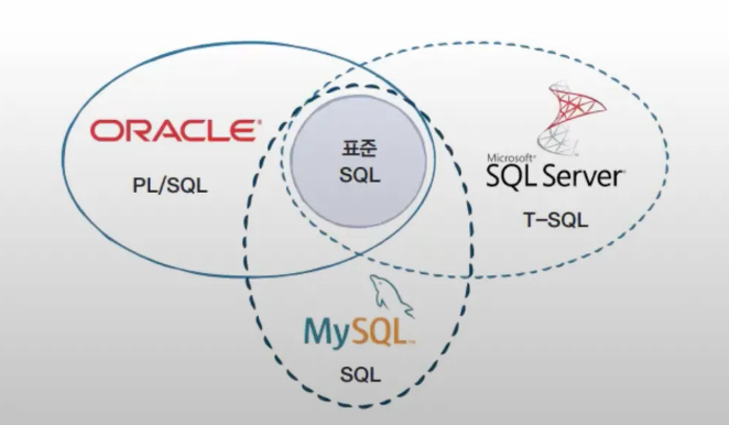 - 하지만, SQL을 사용하는 DBMS를 만드는 회사가 여러 곳이기 때문에, 표준 SQL이 각 회사 제품의 특성을 모두 포용하지 못한다.